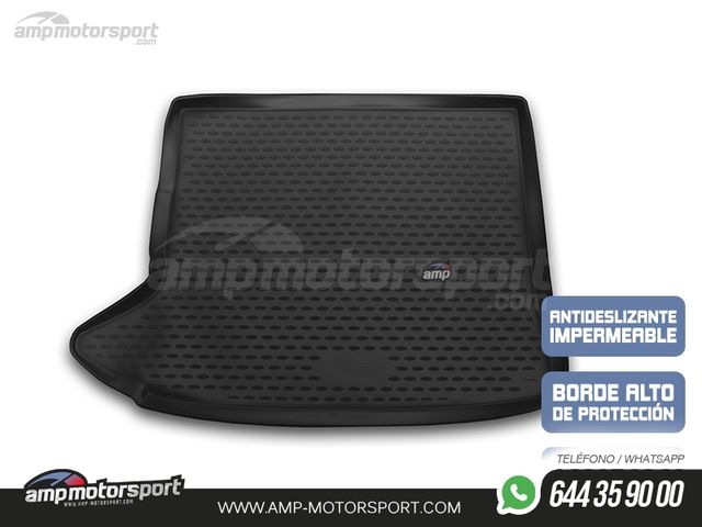 Hecha en material impermeable, con un pequeño borde de unos 5cm en su contorno para evitar cualquier fuga de líquidos o suciedad hacia el maletero.