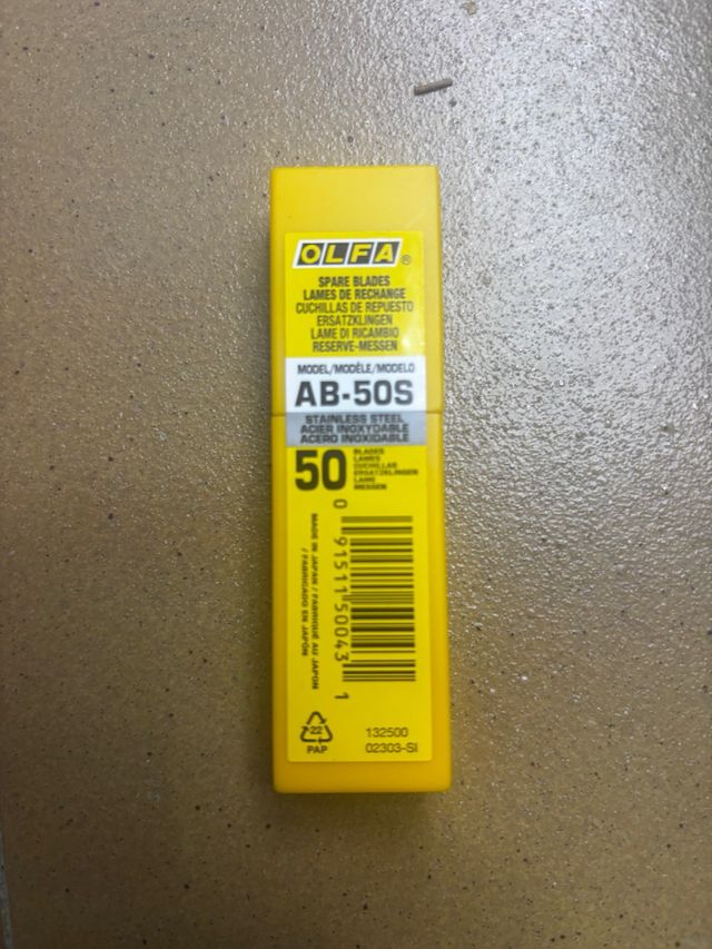 Paquete de 50 cuchillas de recambio para cúter de la marca Olfa. - Modelo AB-50S. - Fabricadas en acero inoxidable. 10€ unidad