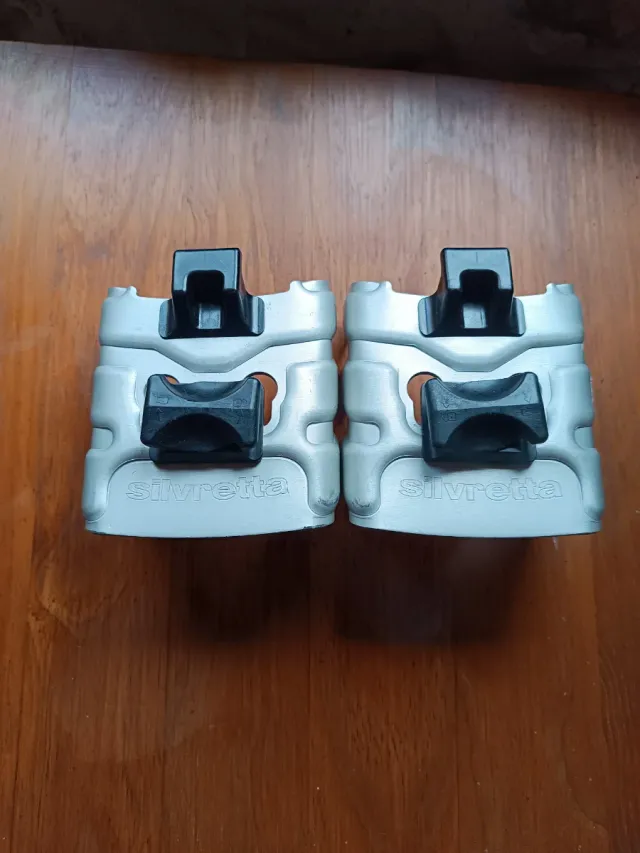 Cuchillas para esquí de travesía de la marca Sylvretta para un ancho de patín de hasta 82 mm. Compatibles con fijaciones como la que se muestra en la última foto.