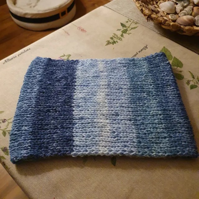 Cuello tipo buff tejido a mano con lana.