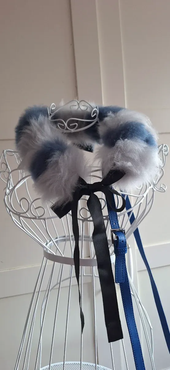 Nuevo · Gloria Ortiz cuello de pelo de cordero · Azul y Gris