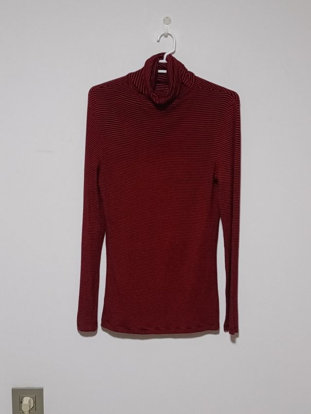 Cuello vuelto a rayas rojas y negras