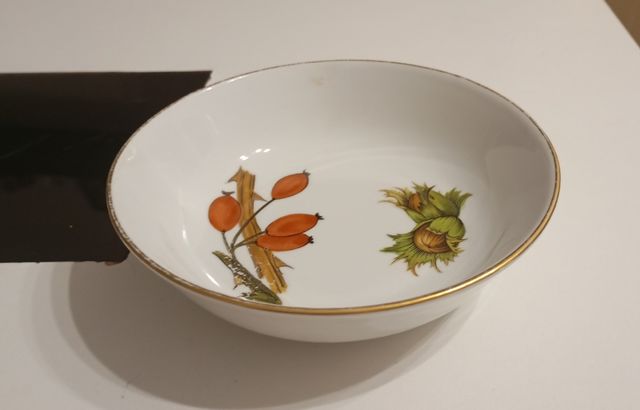 Detalles del productoELEGANTE CUENCO PARA CEREALES O SOPA DE PORCELANA FINA ROYAL WORCESTER, PATRÓN WILD HARVEST, VINTAGE DE LOS AÑOS 60, HECHO EN INGLATERRA,CON DISEÑO AL INTERIOR DEL CUENCO DE AVELLANAS Y ESCARAMUJOS CON HOJAS,CON DETALLES DORADOS EN EL BORDE QUE ANADIE UN TOQUE DE BELLEZA AL CUENCO, ESTÁ EN BUEN ESTADO SIN GOLPES O ABOLLADURAS,MIDE 14X14X3 CM,PESA 219 GR.
