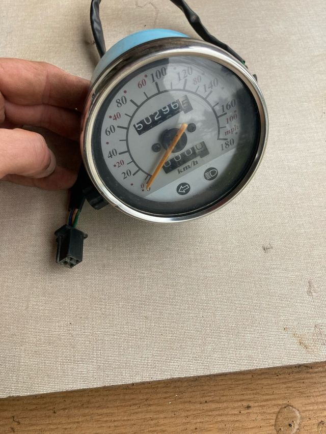 El cuenta kilómetros, como anuncios similares, al desconocer si funciona correctamente lo dejo en 20€ ‘con su cable’. Y los dos claxon tb con sus cables en 15€. Total 35€.