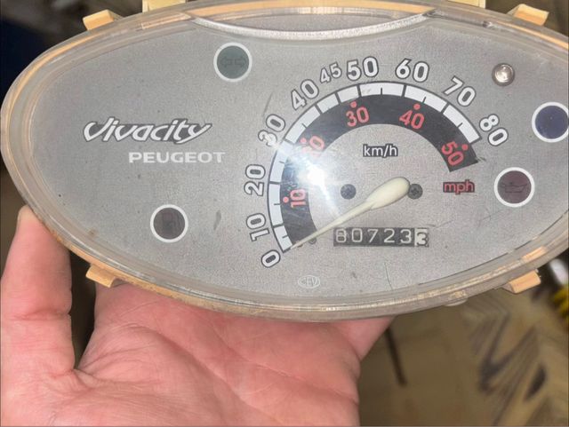 Cuentakilómetros para Peugeot Vivacity. - Marca: Peugeot - Modelo: Vivacity - Indicador de velocidad en km/h y mph