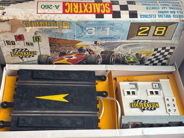 Detalles del productoSe vende cuentavueltas Scalextric A-260 vintage. Está en su caja original, que presenta señales de desgaste por el paso del tiempo. Incluye el marcador y un tramo de circuito.
