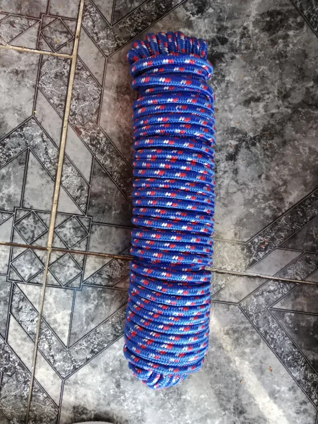 Cuerda nueva sin estrenar, ideal para múltiples usos. - Color: azul con detalles rojos y blancos. - Longitud: 30 metros.