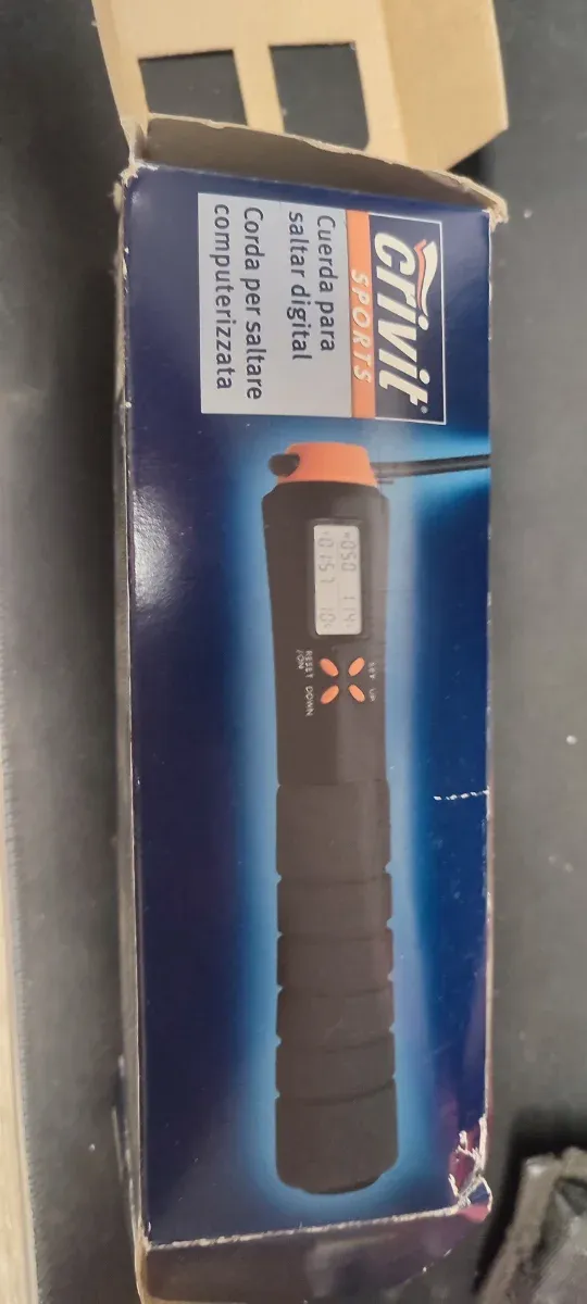 Cuerda de saltar digital de la marca Crivit Sports. Ideal para entrenamientos. - Mango con pantalla digital. - Diseño ergonómico.