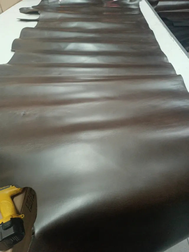 Pieza de cuero de alta calidad en color marrón oscuro. - Grosor de 2.2 mm. - Textura suave y flexible.