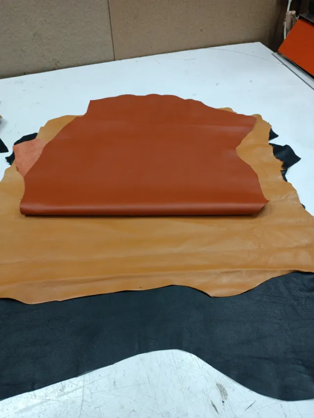 Detalles del productoPiezas de cuero de diferentes tonalidades, ideales para la confección de cachabas o artículos de marroquinería.
