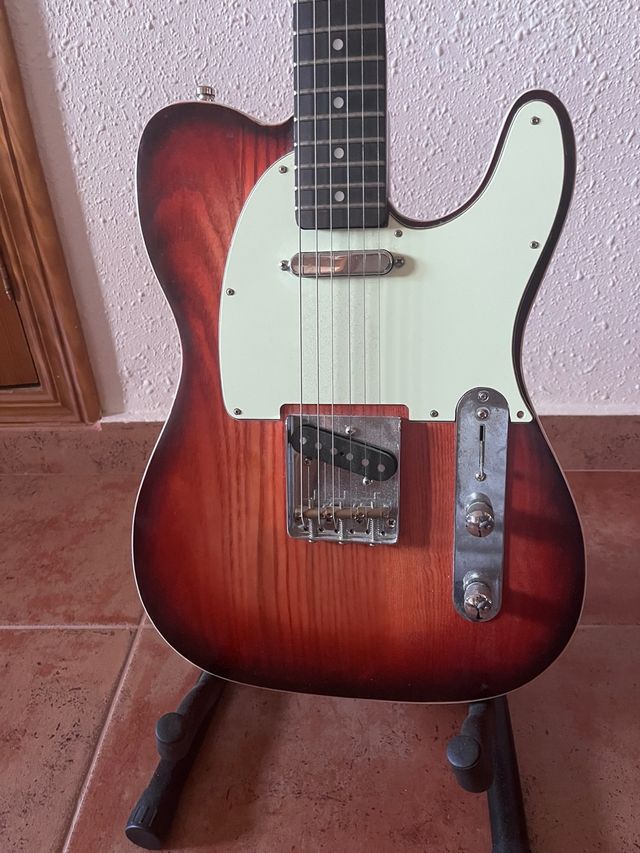 Cuerpo de guitarra estilo Telecaster con acabado Sunburst y laca de nitrocelulosa. - Acabado Sunburst degradado. - Laca de nitrocelulosa.