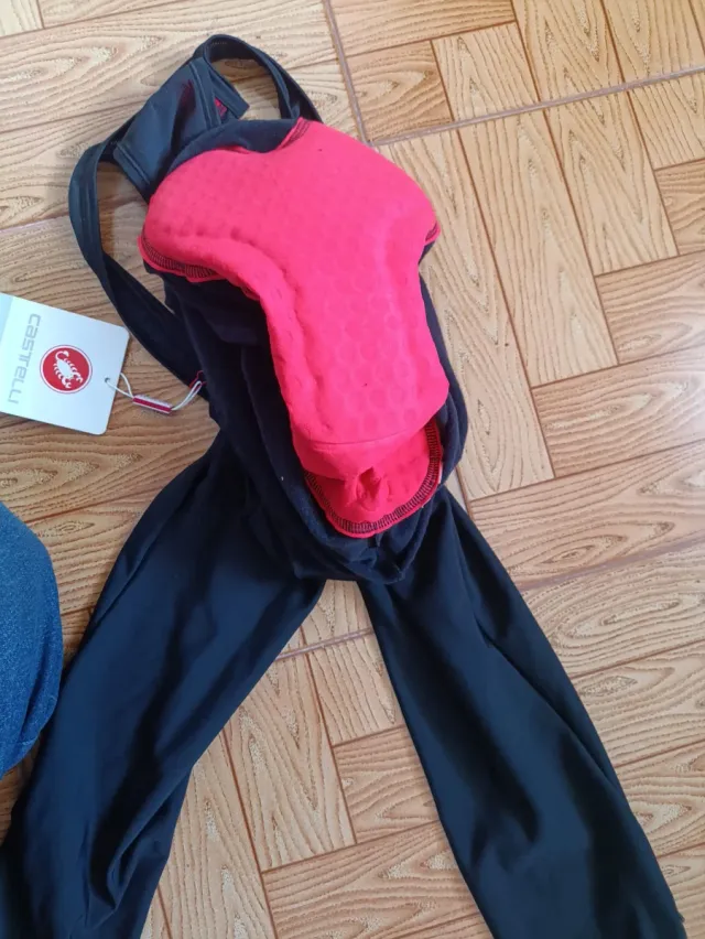 Culote largo de la marca Castelli. - Color negro. - Acolchado interior rojo.