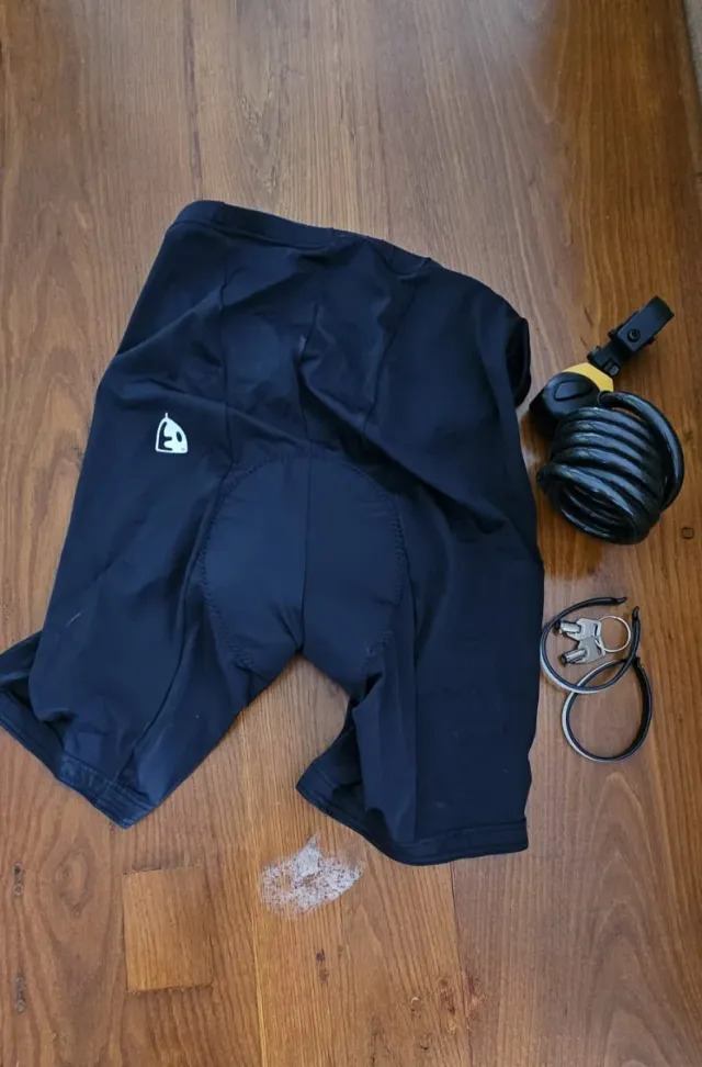Conjunto de culote y bandana para ciclismo. - Culote negro con acolchado. - Bandana negra.