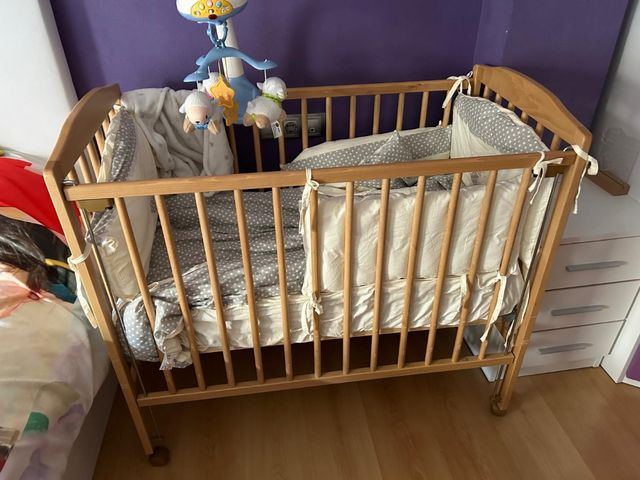 Se vende cuna de bebé usada en buen estado con colchón gordo,sabanas chichoneras y nórdico. 106x57x93 cuna 98x51x14 colchón Desmontada