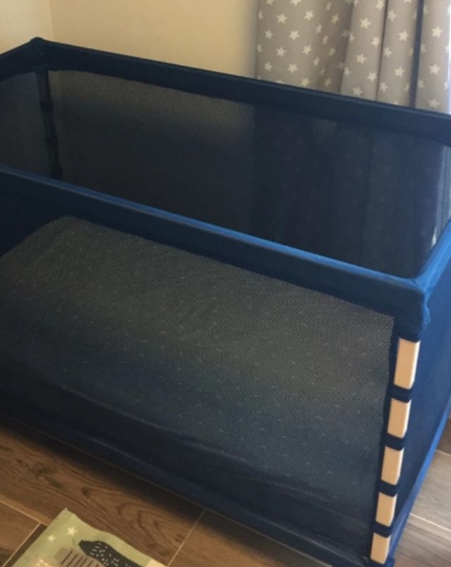 Detalles del productoCOMO NUEVO 👶Marca: IKEA 👶Color: Azul 👶Material: Material base: Madera de haya maciza, Madera de haya maciza. Estructura de la base de la cama: Haya maciza Cinta: 100 % poliéster, 100 % polipropileno Borde de la cama: 100 % poliéster, 100 % poliéster