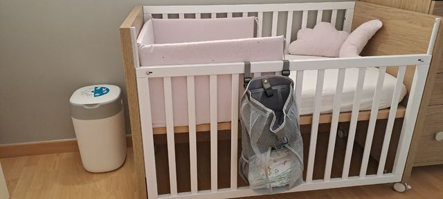 Detalles del productoCuna bebé nueva y muy bonita, barrera se sube y baja para facilitar colocación bebé, con ruedas. Con accesorios incluidos. Usada muy pocas noches. Para venir a recoger Medidas del producto