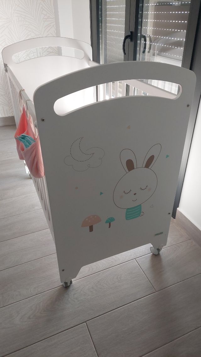Detalles del productoCuna para bebé, en perfecto estado. Es blanca y tiene un bonito diseño de conejo en ambos laterales.