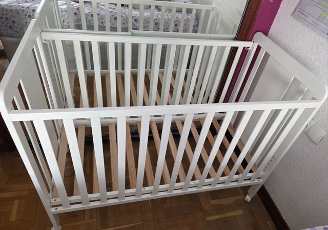 Cuna para bebé de la marca IKID, color blanco y medidas 120x60 cm. Se encuentra en buen estado. - Estructura de madera. - Color blanco. - Ocho alturas.
