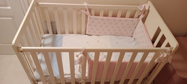 Detalles del productoVendo cuna de madera para bebe incluyendo protectores laterales, colchon con funda y protector impermeable, sabana edredon con funda nórdica, mantita, cambiador, almohada.
