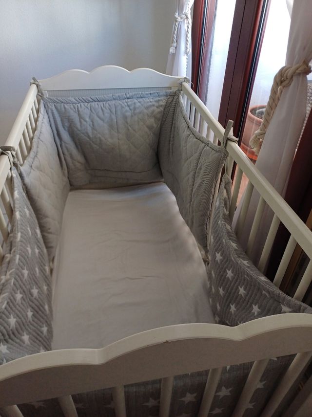 Cuna bebé madera Ikea - colchón y chichonera