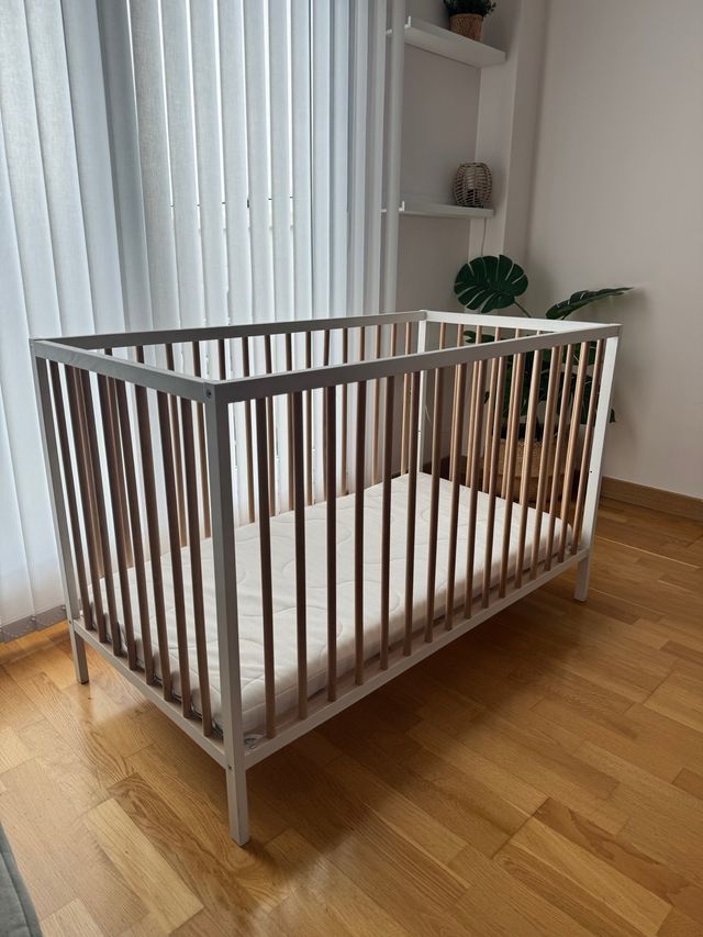 Detalles del productoCuna de madera maciza de marca Ikea haya y blanco, en buen estado.