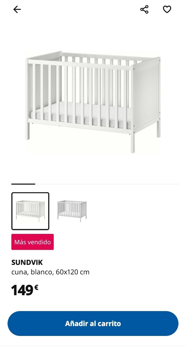 Detalles del productoCuna blanca de ikea sin usar, con varias alturas, adaptada para colecho y convertible a cama.
