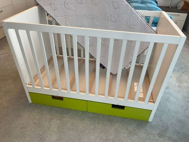 Detalles del productoCuna en perfecto estado, muy completa y bonita. Amplia y con dos cajones para almacenaje. Se regala colchón y chichoneras.
