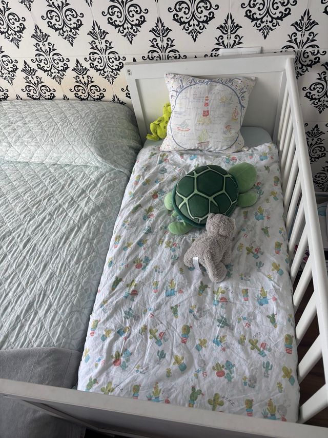 Tiene solo uno de los laterales así que se puede usar exclusivamente como cuna colecho o como cama bajita si se le baja la altura al colchón.