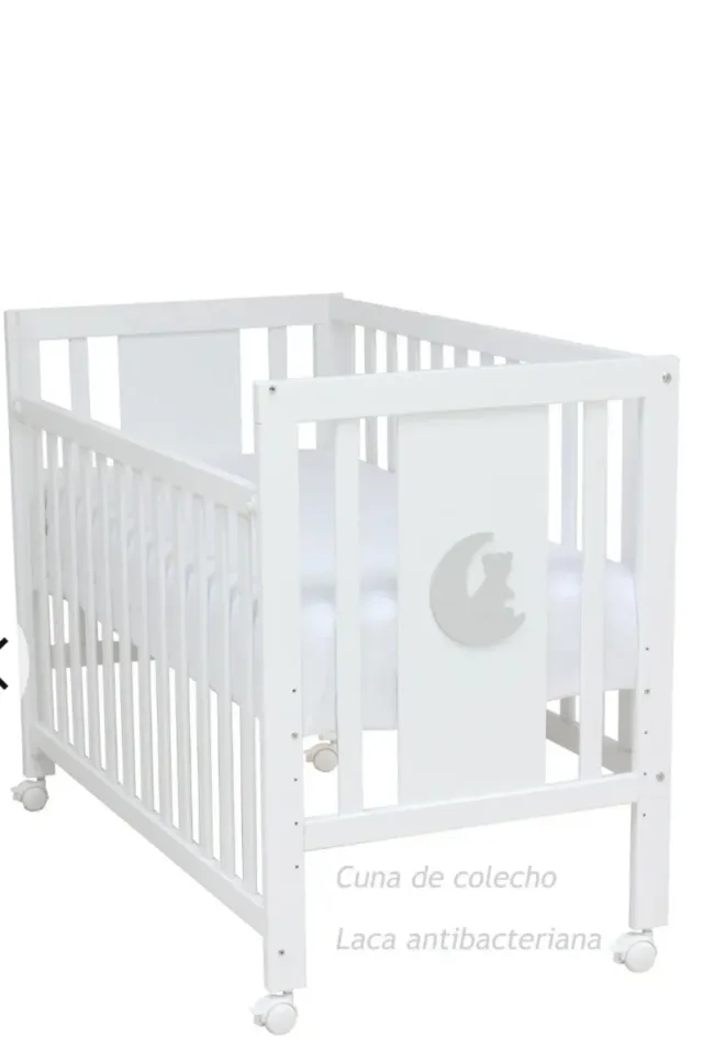 Detalles del productoCuna de colecho en color blanco, ideal para tener a tu bebé cerca. Incluye ruedas para facilitar su movilidad. También incluyo funda protectora de cuna, nórdico y almuada.