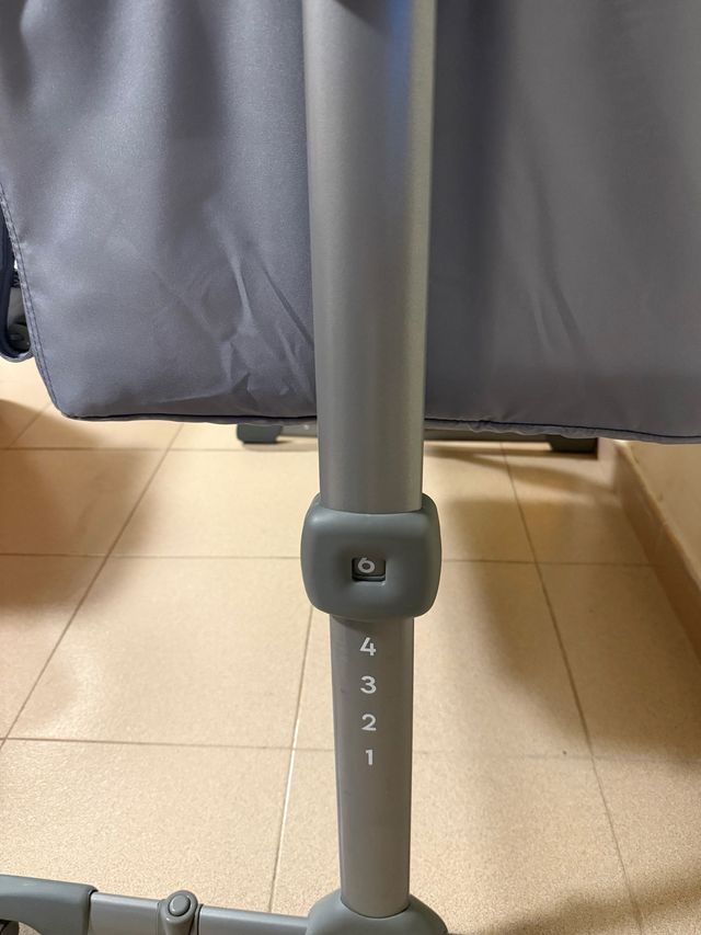 cuna con 5 niveles de altura y con capacidad para incorporar al bebé. Viene con su forro para guardar la cuna.