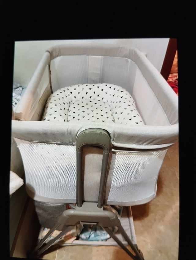 Cuna de colecho con un nido incluido. Ideal para tener al bebé cerca. - Diseño moderno y funcional. - Nido con estampado de corazones.