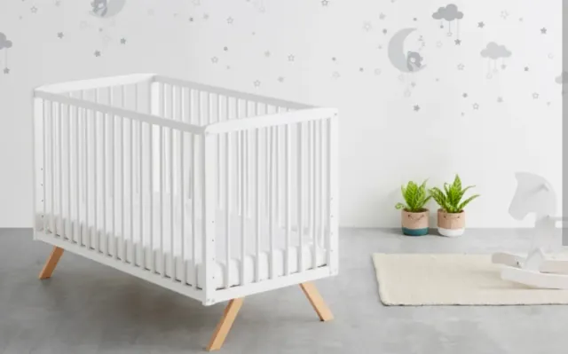 Detalles del productoCuna colecho Nuru de color blanco, con un diseño moderno y patas de madera.