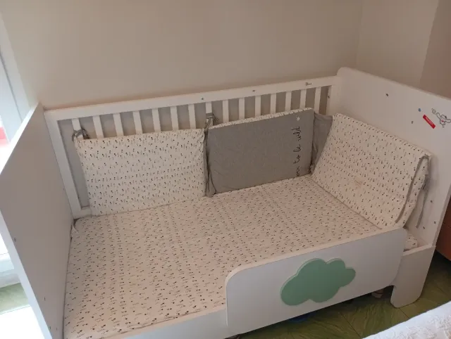 Detalles del productoCuna convertible en cama de 1.40m, en buen estado. Ideal para acompañar el crecimiento del bebé. Incluye colchón nuevo a estrenar, sabanas, funda nórdica, nórdico, protector.