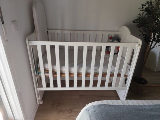 Detalles del productoCuna de bebé en color blanco, ideal para el descanso del recién nacido. Su diseño clásico se adapta a cualquier habitación infantil.