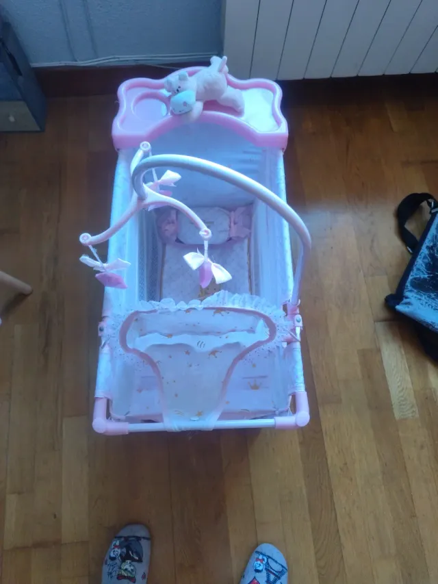 Detalles del productoCuna de juguete de color rosa, ideal para muñecas.