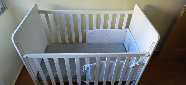 Detalles del productoMarca micuna con ruedas esta en perfecto estado y la barandilla se puede subir y bajar,la cuna es regulable en varias alturas para el colchón.El colchón es de nueva tecnología ideal para la espalda de los niños y muy transpirable. Se regala protector y ropa de cuna . Medidas del producto