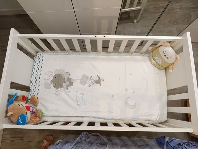 Cuna de madera en color blanco, ideal para el descanso del bebé. - Diseño clásico y funcional. - Estructura robusta de madera.
