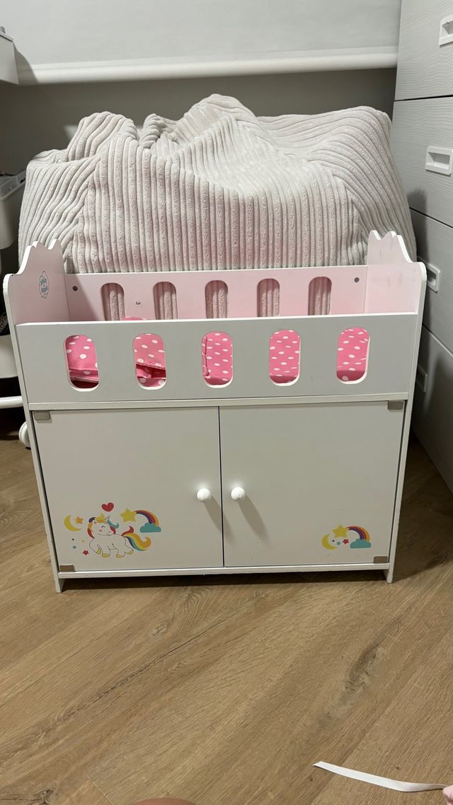 Detalles del productoPreciosa cuna de madera para muñecas, con un diseño encantador y un armario incorporado.