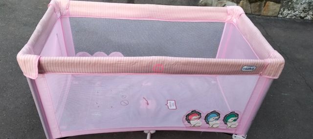 Cuna de viaje/ corralito. En buen estado, pero con alguna mancha del uso, no rotos ni manchas de suciedad . Tiene un colchón hecho a medida.