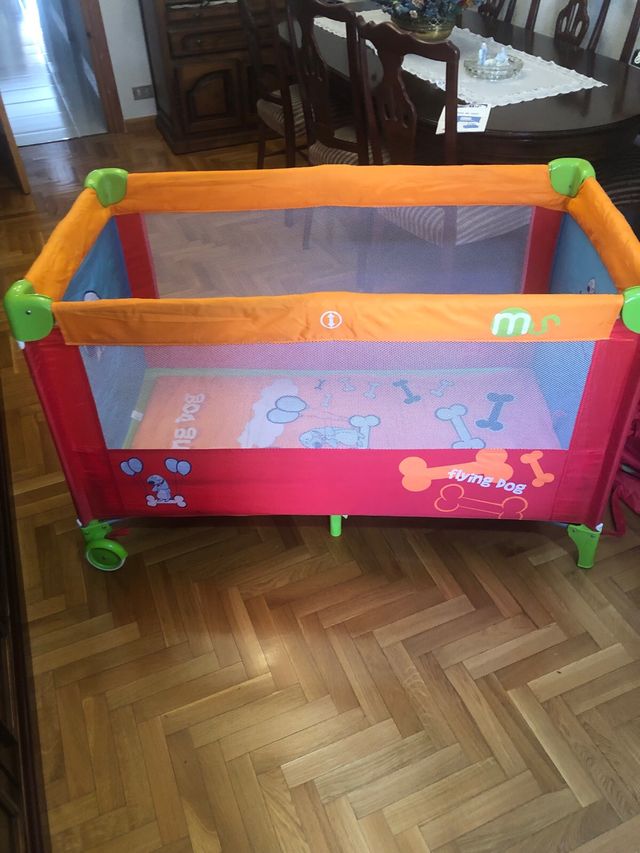 Cuan de viaje con dos posibles alturas. Prácticamente nueva. Fácil montaje y recogida. Con libro de instrucciones. Lleva ruedas con freno.