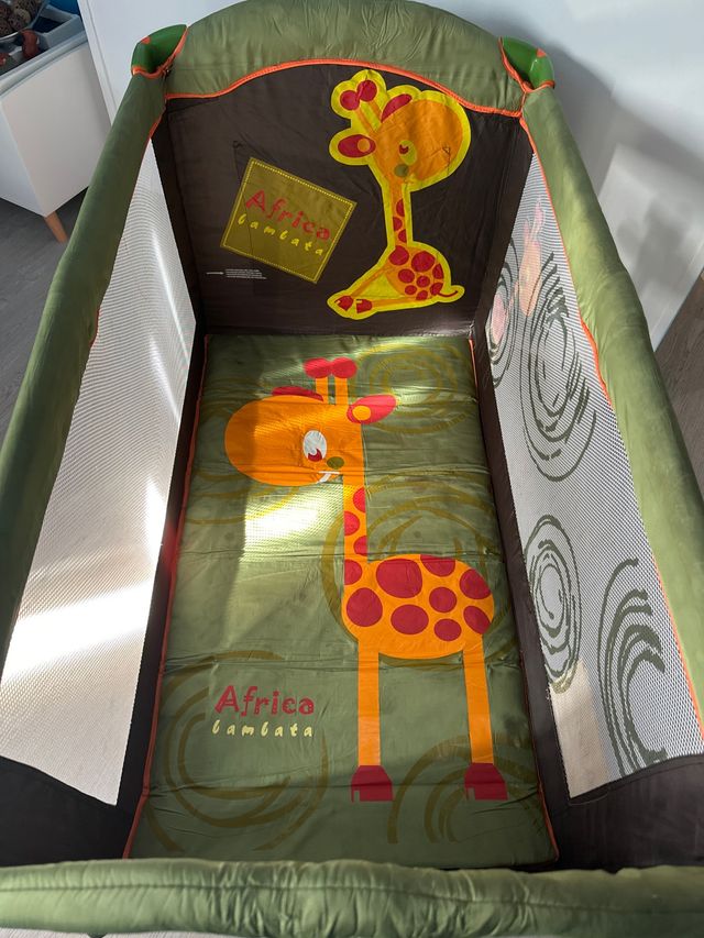 Detalles del productoCuna de viaje con un divertido diseño de jirafas y temática africana.
