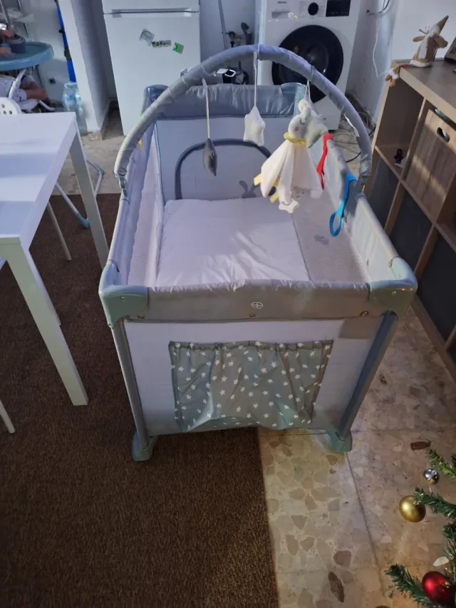 esta en perfectas condiciones, no se ha desmontado nunca, ni ha tenido viajes,lo monté y ahí se ha quedado siempre,se vende con los enganches de colores de los laterales que son aparte y con un colchón que lo tuvimos que comprar a parte también. viene con cremallera para apertura de entrada y salida del bebé y bolsillo en el otro frente.