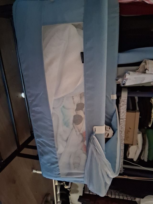 Detalles del productoCuna de viaje portátil en color azul, ideal para bebés. Fácil de montar y desmontar.