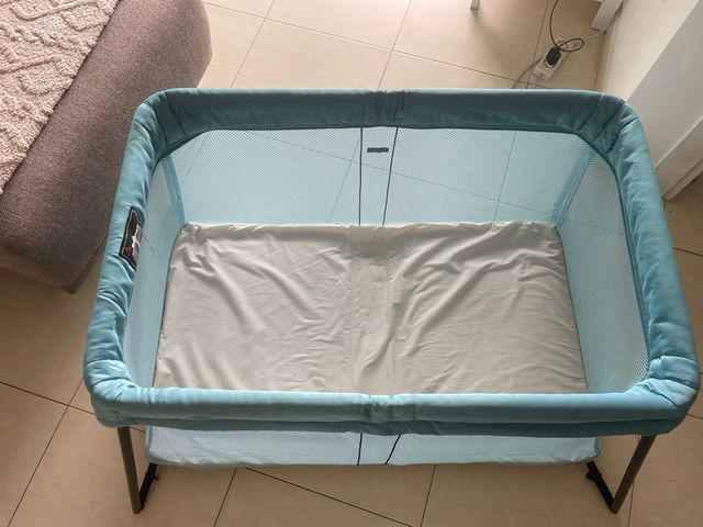 Cuna de viaje BabyBjorn en color azul. Es ligera y fácil de montar. - Estructura de metal. - Laterales de malla transpirable.