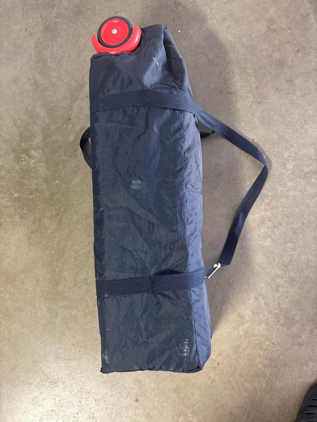 Cuna de viaje portátil, fácil de transportar gracias a sus ruedas. - Color azul marino. - Incluye asas de transporte.