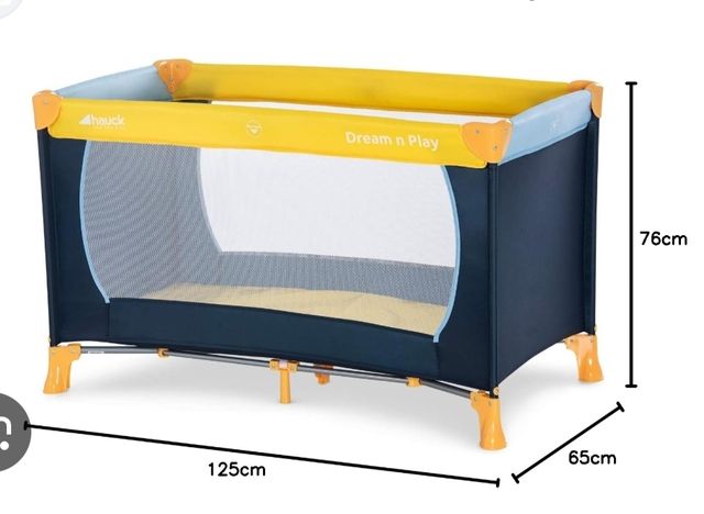 Detalles del productoCuna de viaje Hauck, modelo Dream n Play, en color azul y amarillo. Ideal para viajes o como parque de juegos.