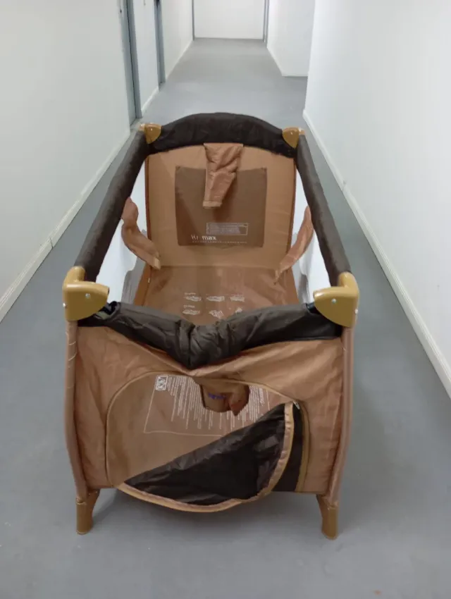 Cuna de viaje INFANTASIC en color marrón. - Estructura resistente. - Laterales de malla para ventilación. - Puerta con cremallera. - precio no negociable