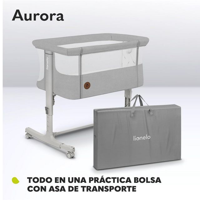 Detalles del producto lionelo Aurora Cuna 3 en 1 hasta 9 kg, Cuna de colecho, Cuna Mecedora, Ajuste de Altura e inclinación del colchón, 4 Ruedas con Freno, Colchón Ergonómico, Bolsa