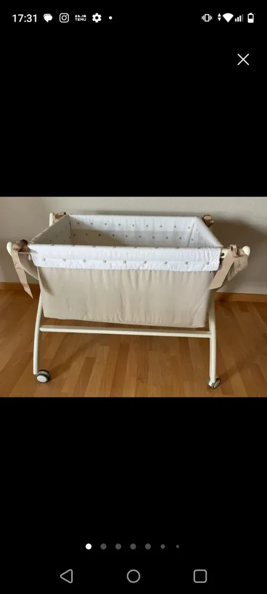 Detalles del productoCuna de viaje en color beige, ideal para bebés. Fácil de transportar y montar.