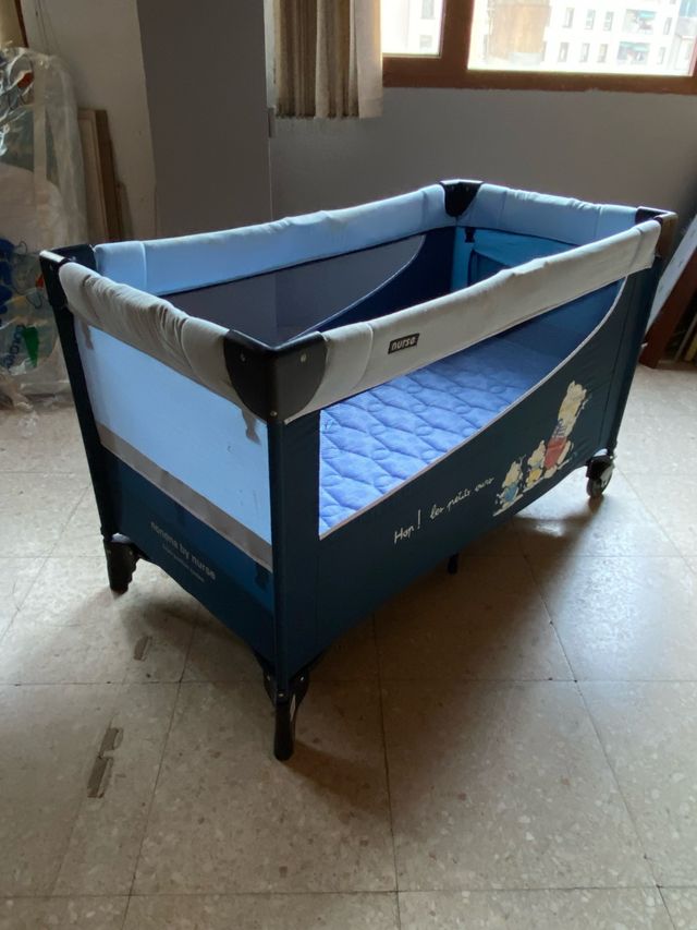 Detalles del productoCuna de viaje en color azul, ideal para transportar y usar en diferentes lugares. Cuenta con un diseño práctico y seguro.